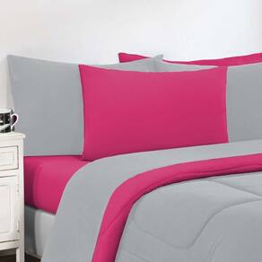 Marca: Enxovais Davy | Estampa: Não se Aplica | Medidas: 01 Edredom Queen Dupla Face Liso 2,20m x 2,40m02 Porta Travesseiros 70cm x 50cm | de Peças: 03 Peças | Material: Agodão | Cor Predominante: Cinza/Pink | Cama Indicada: Queen