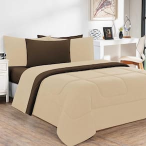 Marca: Enxovais Davy | Estampa: Não se Aplica | Medidas: 01 Edredom Queen Dupla Face Liso 2,20m x 2,40m02 Porta Travesseiros 70cm x 50cm | de Peças: 03 Peças | Material: Agodão | Cor Predominante: Palha /Marrom | Cama Indicada: Queen