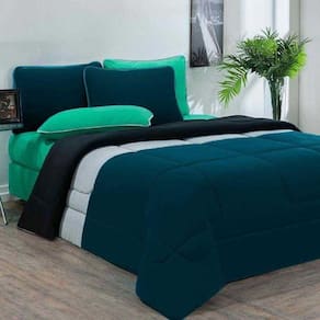 Marca: Enxovais Davy | Estampa: Não se Aplica | Medidas: 01 Edredom Solteiro Urbano 1,60m x 2,40m01 Fronha 70cm x 50cm | de Peças: 02 Peças | Material: Agodão | Cor Predominante: Azul Petroleo/Mescla/Preto | Cama Indicada: Solteiro