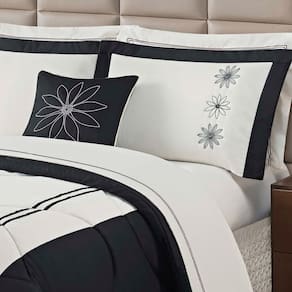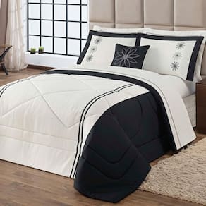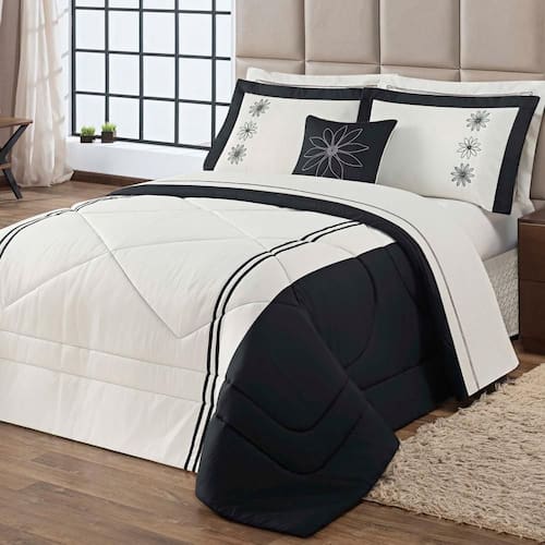Kit edredom marguerite queen 05 peças 100% poliéster preto O kit marguerite queen é composto por 01 edredom pantografado muito confortável, volumoso e aconchegante, além deste item, o kit ainda conta com mais 02 porta travesseiros, 01 capa de almofada e 01 refil de almofada. A coleção marguerite é confeccionada em tecido 100% poliéster e elabora em três cores. O kit marguerite queen é composto por 01 edredom pantografado muito confortável, volumoso e aconchegante, além deste item, o kit ainda conta com mais 02 porta travesseiros, 01 capa de almofada e 01 refil de almofada. Precisamos destacar que neste kit os porta travesseiro e a capa de almofada são bordados.