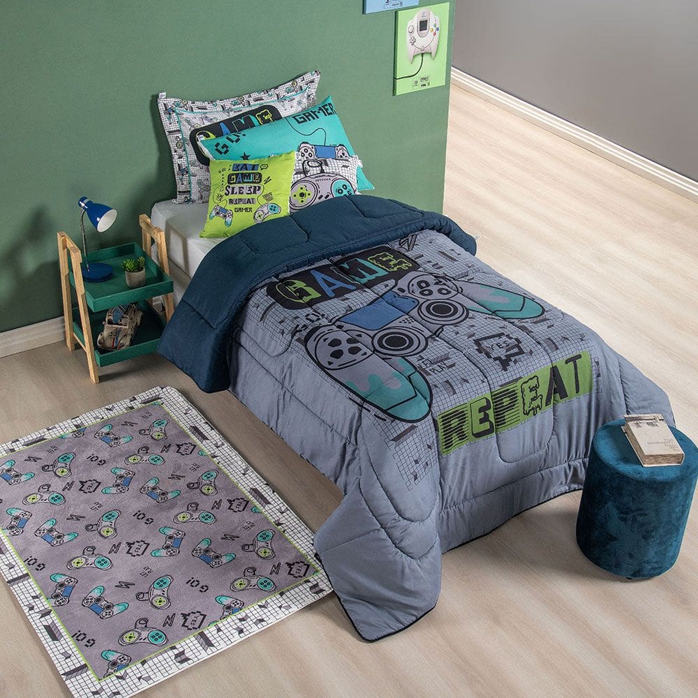 Kit Edredom Solteiro Infantil Menino 5 Peças Game Juvenil Hipercal 400 Fios