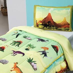 Kit Edredom Plush Fofinho Infantil Dupla Face Dream 2 Peças Solteiro - Dinossauro