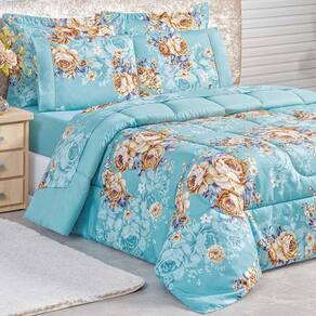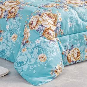 O edredom é dupla face, com uma parte estampada e outra lisa em cor sólida. Essa versatilidade permite que você alterne entre os dois lados, oferecendo diferentes opções de decoração e combinando com o estilo do seu quarto.