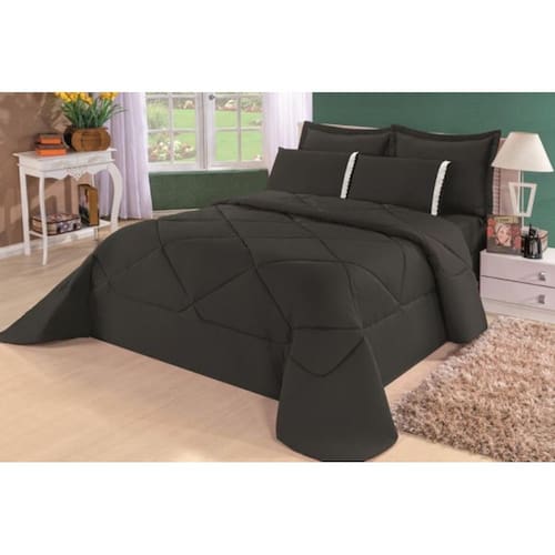 Contem: 01 Edredom Dupla Face Casal Queen 2,40m x 2,20m 02 Porta Travesseiro 70cm x 50cm 02 Fronhas com Lesie 70cm x 50cm 01 Lençol De Baixo com Elástico Para colchão de 1,98m x 1,58m x 30cm altura