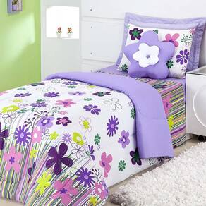 Kit edredom solteiro 3 peças garden lilás