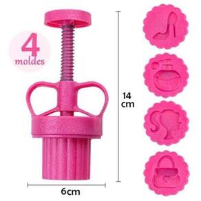 - Nesta opção possui o tema de bonequinhas. - Produz doces de até 25g. - Produzido em plástico resistente. - Tamanho: 14,5cm
