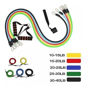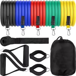 O Kit Tubing 11 peças é perfeito para quem quer fortalecer, tonificar e definir os músculos. Ele vem com elásticos em forma de tubo feitos de látex de alta qualidade e resistência. Cada elástico tem diferentes resistências. É possível realizar os exercícios usando 1 ou até 5 elásticos ao mesmo tempo, criando assim mais de 30 níveis diferentes de resistência.