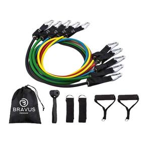 O Kit Tubing Premium 11 peças Bravus Sport foi feito para os usuários mais exigentes e que buscam um produto de alta resistência para superar todos os limites e levar seu treino para outro nível. O elástico tubing antipressão é feito de material de qualidade premium, 100% látex Natural. Os mosquetões de aço resistente e as tiras firmemente costuradas também evitam o rasgo, mesmo sob a extrema resistência ao estiramento.