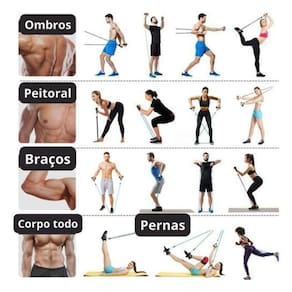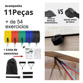 Kit Elástico Para Treino Musculação Exercício Academia Casa Kit Elástico para Treino em Casa: Defina e Fortaleça Seus Músculos com Qualidade e Conforto O Kit Elástico para Treino que vai transformar sua rotina de exercícios em casa Com esse conjunto de elásticos de alta qualidade, você terá a praticidade e a segurança necessárias para tonificar, fortalecer e definir seus músculos no conforto do seu lar. Características Incríveis: - Versatilidade e Variedade: O kit contém 5 extensores elásticos feitos de látex natural de alta qualidade, cada um com uma resistência diferente: Amarelo 4,5 kg , Vermelho 6,8 kg , Azul 9 kg , Verde 11,3 kg e Preto 13,6 kg . Varie e personalize seu treino de acordo com suas necessidades. - Exercícios Personalizados: Use de 1 a 5 elásticos ao mesmo tempo para criar diferentes níveis de resistência, adaptando seu treino de acordo com seu progresso. - Acessórios Ergonômicos: O kit inclui 2 puxadores ergonômicos e 2 alças de punho ou tornozelo, permitindo uma variedade de exercícios para todo o corpo. - Âncora de Porta Segura: A âncora de porta proporciona versatilidade ao permitir que você fixe os elásticos de forma segura em portas, expandindo as possibilidades de exercícios. - Bolsa de Transporte e Guia de Exercícios: Mantenha tudo organizado com a bolsa de transporte inclusa. Além disso, o guia de exercícios fornecerá orientações para maximizar seus resultados. Itens Inclusos no Kit: 5 Extensores Elásticos Amarelo, Vermelho, Azul, Verde, Preto 2 Puxadores Ergonômicos 2 Alças de Punho ou Tornozelo 1 Âncora de Porta 1 Bolsa de Transporte e Armazenamento 1 Guia de Exercícios Cuidados Importantes: Os elásticos possuem um comprimento de 1,20m. Evite esticá-los além de 2,20m. Recomendamos o uso para exercícios de baixa intensidade, auxiliando no aquecimento e na preparação das articulações. Nota: A imagem é meramente ilustrativa e não representa a escala real dos elásticos. Transforme sua casa em um verdadeiro centro de treinamento com nosso Kit Elástico para Treino Marca: Elástico Para Exercicios Ean: 7890018510171