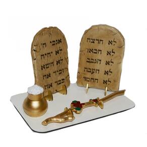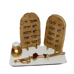 Utensílios da Arca da Aliança com Pote de Mana, Tábuas e Vara de Aarão COM BASE