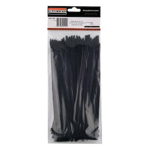 Abraçadeira fabricada em nylon resistente com acabamento na cor preta. Indicado para o uso doméstico e industrial, para a fixação diversa em cabos elétricos, veículos, bicicletas, etc.
