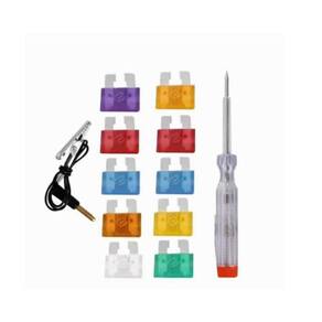 Kit Elétrico com 10 Fusíveis Automotivos e Chave de Teste Tenha praticidade e segurança para o sistema elétrico do seu veículo com este completo Kit Elétrico Automotivo Ideal para manutenção e de fusíveis, ele inclui uma chave de teste para identificar falhas rapidamente e manter o funcionamento perfeito do seu carro. O que está incluso 10 Fusíveis Automotivos: Diversas amperagens para atender diferentes necessidades elétricas do veículo. 1 Chave de Teste: Ferramenta prática para verificar circuitos elétricos de maneira rápida e eficiente. Características do Produto Compatibilidade Universal: Fusíveis adequados para a maioria dos modelos de carros e caminhões leves. Fácil Identificação: Fusíveis coloridos e codificados por amperagem para facilitar o uso. Chave de Teste Funcional: Compacta e ideal para identificar falhas no circuito elétrico com precisão. Marca: Não Informado
