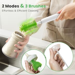 - Eficiente: a escova elétrica para mamadeira Bestidy está equipada com um motor potente, 2 modos de velocidade e rotação de 360°. Com apenas um botão, você pode limpar facilmente diferentes graus de manchas persistentes em mamadeiras e bicos em 90 segundos.