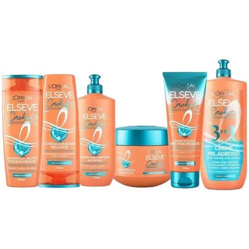 Kit Cachos Longos dos Sonhos Completo Elseve Hialurônico Nutre e Protege Óleo Rícino Anti-Frizz Brilho Intenso Sem Sal