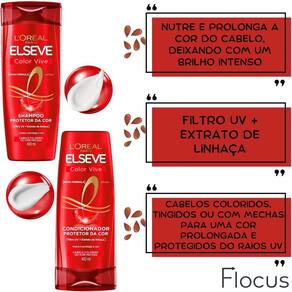 Kit Elseve Color Vive Óleo Extraordinário Cicatri Renov Bem vindo a a loja Flocus. É um prazer tê-lo a como nosso a cliente CONTEÚDO DO KIT: 1 Shampoo Protetor da Cor L'Oréal Paris Elseve Color Vive - 400ml 1 Condicionador Protetor da Cor L'Oréal Paris Elseve Color Vive - 400ml 1 Creme Milagroso 3 em 1 L'Oréal Paris Elseve - 500 ML 1 Leave-in de Tratamento L'Oréal Paris Elseve Cicatri Renov - 100ml 1 Óleo Extraordinário L'Oréal Paris Elseve - 100ml Os cabelos coloridos são mais sensíveis que os naturais. Lavagens repetidas, raios UV Ultra-Violeta e a poluição aceleram o ressecamento: a cor desbota e perde o brilho. Por isso, eles precisam de um tratamento específico Após anos de pesquisas, LOréal Paris desenvolveu o Elseve Colorvive, com a revolucionária tecnologia Nutri-Impermeabilizante. O resultado: são cabelos mais macios, nutridos e a cor radiante visivelmente prolongada. O Elseve Colorvive ajuda na proteção e impermeabilização dos fios contra as agressões externas com sua tecnologia Nutri-Impermeabilizante. A linha Elseve Reparação Total 5 atua contra os principais danos: Quebra, Rigidez, Opacidade, Ressecamento e Pontas Duplas. Com uma ação exclusiva da cicatri ceramida, repara já no 1º uso Ajuda a reduzir fios quebradiços, trazendo mais brilho e flexibilidade ao cabelo. Remove as pontas duplas e recupera a estrutura da fibra deixando os fios uniformes, selados e protegidos como se fosse uma cicatrização da fibra capilar. Para turbinar seu tratamento capilar, o kit contém o famoso e um dos mais vendidos Óleo de Tratamento Elseve Óleo Extraordinário Nutrição, pois ele tem a combinação perfeita de micro-óleos de flores preciosas, garantindo maciez e brilho aos cabelos. O segredo dos óleos de flores preciosas promovem uma nutrição perfeita e uma leveza infinita. Camomila Linhaça Girassol Gardênia Lótus Rosa Canina INDICAÇÃO: Ideal para quem tem cabelos coloridos, tingidos ou com mechas e deseja uma cor prolongada e os fios protegidos do raios UV. BENEFÍCIOS: Nutrir e prolonga a cor do seu cabelo, deixando com um brilho intenso. Hidratação do comprimento às pontas, com uma carga ideal para este tipo de cabelo. MODO DE USO: . 1 Passo: Shampoo: Aplique nos cabelos molhados e massageie suavemente; Enxágue. Repita a operação se necessário. . 2 Passo: Condicionador: Aplique o Condicionador em todo o comprimento até as pontas. Deixe o produto agir. Enxague abundantemente. . Creme Milagroso 3 formas de uso : Super Condicionador para Desembaraçar: Aplique em todo comprimento até as pontas. Deixe agir por 3 minutos e enxágue. Tratamento Intensivo para Transformar: Aplique em todo comprimento até as pontas. Deixe agir por 5 minutos ou mais e enxágue. Creme para Pentear para Nutrir e/ou Finalizar: Aplique no cabelo úmido ou seco, não enxágue e penteie como de costume. . Leave-in: Distribua uma pequena quantidade nos fios secos, do comprimento às pontas. Pode ser antes e depois da escova ou chapinha. Sem enxágue. . Óleo Extraordinário: O Óleo Extraordinário de tratamento é leve e multiuso, pode ser tanto em cabelos molhados quanto secos Pode ser antes da escova para nutrir os fios; como finalizador para malear a fibra; em qualquer momento para disciplinar o frizz e ressaltar a luz dos cabelos. OBS: Para uma cor mais intensa e de longa duração pinte seu cabelo com Imédia Excellence de L'Oréal Paris, coloração triplo cuidado, e use Elseve Colorvive para a manutenção, protegendo a cor e o brilho do fio. Agradecemos por escolher a Loja Flocus e por confiar em nós para cuidar da beleza dos seus cabelos. Qualquer dúvida, favor enviar sua pergunta Flocus