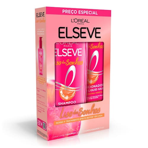 Kit Elseve Liso dos Sonhos Transforme seus cabelos com o Kit Elseve Liso dos Sonhos, a solução perfeita para quem busca alisar e revitalizar a fibra capilar de forma prática e eficaz. Este kit inclui