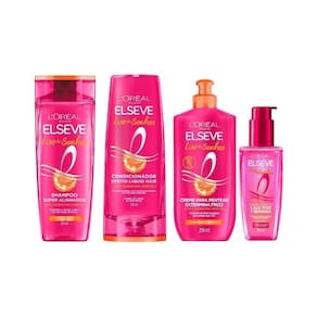 Descrição Dê adeus ao frizz e conquiste fios lisos, nutridos e com brilho espelhado todos os dias o kit elseve liso dos sonhos oferece um cuidado completo para cabelos lisos naturais ou alisados, com ação anti-frizz desde o primeiro uso e sem necessidade de química. Sua fórmula com queratina vegetal nutre profundamente, alinha os fios e proporciona maciez e movimento leve e natural. Shampoo - limpeza suave que remove impurezas sem ressecar, preparando os fios para o cuidado diário. Condicionador - desembaraça, hidrata e sela as cutículas para um liso com mais brilho e menos frizz. Creme para pentear - facilita o desembarace, controla o frizz e protege os fios ao longo do dia. Sérum - finalizador com alto poder de brilho, toque sedoso e proteção térmica. Sela pontas e combate o arrepiado.