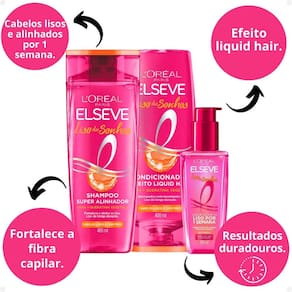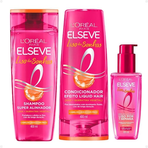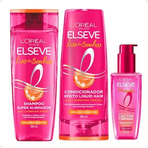 O Kit Liso dos Sonhos foi desenvolvido especialmente para quem deseja cabelos lisos, disciplinados e com controle do frizz. Sua fórmula inovadora foi criada para alisar e alinhar os fios, proporcionando um efeito liso duradouro e suave, com brilho natural e sem frizz. Enriquecido com ingredientes que suavizam a estrutura capilar.