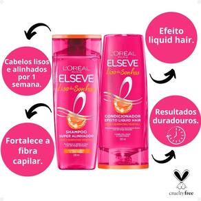 O Kit Elseve Liso dos Sonhos - Shampoo e Condicionador (200ml) é a solução perfeita para quem busca cabelos lisos, alinhados e sem frizz. Formulado com queratina vegetal líquida e manteiga de cacau, esse kit oferece um tratamento completo que alinha os fios, controla o frizz e proporciona nutrição intensa. O Shampoo Liso dos Sonhos limpa delicadamente enquanto prepara o cabelo para um liso perfeito, fortalecendo a fibra capilar e proporcionando um brilho incrível. O Condicionador Liso dos Sonho age selando a fibra capilar, restaurando e nutrindo os fios, deixando-os mais suaves e com movimento natural, além de manter o frizz controlado por mais tempo. Esse kit proporciona cabelos com o efeito liso desejado, leve e sedoso, ideal para quem quer praticidade e resultados duradouros.