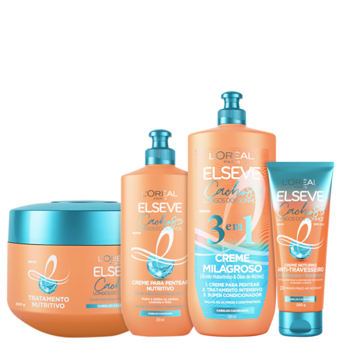 Kit Elseve L'Oréal Paris Cachos dos Sonhos Tratamento para cabelos cacheados. Promove cachos longos, fortes e definidos.