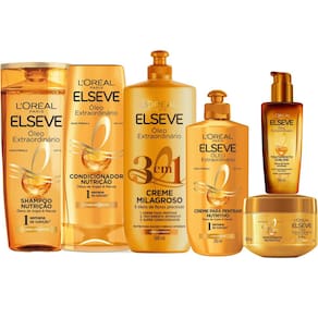 Kit Elseve Óleo Extraordinário Shampoo Condicionador 3 em 1 Bem vindo a a loja Flocus. É um prazer tê-lo a como nosso a cliente CONTEÚDO DO KIT: 1 Shampoo Elseve Óleo Extraordinário Nutrição Argan e Marula 200ml 1 Condicionador Elseve Óleo Extraordinário Nutrição Argan e Marula 200ml 1 Creme de tratamento Elseve Óleo Extraordinário Nutrição Óleos de Argan e Marula 300G 1 Creme para Pentear L'Oréal Paris Elseve Óleo Extraordinário - 250ml 1 Creme Milagroso 3 em 1 L'Oréal Paris Elseve Óleo Extraordinário 6 Óleos de Flores Preciosas - 500ml 1 Óleo Extraordinário L'Oréal Paris Elseve - 100ml Um cabelo seco parece estar sem vida, pois ele está opaco, sem brilho e tem um toque áspero. O kit Elseve Óleo Extraordinário Nutrição é perfeito para esse tipo de problema. A linha Elseve Óleo Extraordinário foi desenvolvida para nutrir cabelos secos, promovendo suavidade infinita, brilho excepcional e vitalidade deslumbrante. Com a tecnologia de micro óleos de argan e marula nutre os fios, sem pesar. O segredo dos óleos de argan e marula promovem uma nutrição perfeita e uma leveza infinita. Resultado: O cabelo fica cheio de vida, com toque sedoso e brilho deslumbrante. INDICAÇÃO: Cabelos secos Cabelos muito secos BENEFÍCIOS: Limpa, dá brilho e nutre; Fios Leves e com vitalidade; Cabelos hidratados e com textura leve; Promove Inovação; Possui micro óleos essenciais; Brilho excepcional; Vitalidade deslumbrante. MODO DE USAR: . Shampoo: Aplique nos cabelos molhados e massageie suavemente; Enxágue. Repita a operação se necessário. . Tratamento Nutritivo: Após o uso do Shampoo, aplique sobre os cabelos lavados e úmidos Deixe agir por 5 minutos Enxague bem. . Condicionador: Aplique o Condicionador em todo o comprimento até as pontas. Deixe o produto agir. Enxague abundantemente. . Creme 3 em 1: Pode ser como: Super Condicionador para Desembaraçar: aplique em todo comprimento até as pontas. Deixe agir por 3 minutos e enxágue. Tratamento Intensivo para Transformar: aplique em todo comprimento até as pontas. Deixe agir por 5 minutos ou mais e enxágue. Creme para Pentear para Hidratar e/ou Finalizar: aplique no cabelo úmido ou seco, não enxágue e penteie como de costume. . Creme para Pentear: Distribua igualmente uma pequena porção do produto ao longo de todo o comprimento e pontas dos cabelos úmidos Não enxague e penteie como de costume. . Óleo Extraordinário: O Óleo Extraordinário de tratamento é leve e multiuso, pode ser tanto em cabelos molhados quanto secos Pode ser antes da escova para nutrir os fios; como finalizador para malear a fibra; em qualquer momento para disciplinar o frizz e ressaltar a luz dos cabelos. Não perca a oportunidade de experimentar a magia dos cabelos extraordinários Agradecemos por escolher a Loja Flocus e por confiar em nós para cuidar da beleza dos seus cabelos. Em caso de dúvidas, favor enviar sua pergunta Flocus Marca: Não Informado Ean: 7735118890498