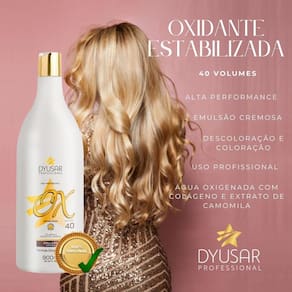 Modo de uso: Misturar a emulsão oxidante com a tintura ou descolorante, conforme as proporções de diluição aconselhadas para cada tipo de produto. Cuidados: contém substâncias passíveis de causar alergia na pele. Antes de usar, faça a prova de toque. Não usar nos cílios e sobrancelhas pois pode causar irritação nos olhos ou cegueira. Não aplicar se o couro cabeludo estiver irritado ou lesionado. Em caso de contato, enxaguar com água abundantemente. Manter fora do alcance das crianças. Evitar exposição ao sol. Contém peróxido de hidrogênio. Usar luvas adequadas. Usar luvas apropriadas. Respeitar o tempo de pausa. Não utilizar ferramentas metálicas. Tempo de uso: Até 50 minutos. Este produto deve ser utilizado apenas por um cabeleireiro. Prova de toque: aplicar pequena quantidade no antebraço ou atrás da orelha. Deixar sobre a pele uma hora. Em seguida enxaguar o local. Aguardar 24 horas. Caso surja sinais de irritabilidade, não utilizar o produto. Dy Plex Protetor de Descoloração DYUSAR Cosméticos 300 ml, é um restaurador capilar que proporciona proteção nos processos de coloração e descoloração.168745/2019-34 Modo de usar: Adicione de 10 a 12 ml do blond plex a um recepiente de coloração ou descolororação e siga corretamente o passo a passo e as recomendações correspondentes ao produto utilizado. Marca: Não Informado
