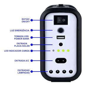 Este Kit De Energia Solar é ideal para você que busca um produto versátil que pode ser usado de várias formas e em qualquer lugar. Possui várias funções, por exemplo, pode ser utilizado como lanterna, luz de emergência e se precisar, como powerbank. Acompanha uma bateria de 4500mah que pode carregar seu celular. Por ser portátil, te permite utilizar onde for preciso, pois vem com 3 lâmpadas bulbo led de 3w de alta intensidade, seja em casa, no campo, pescaria ou até no acampamento. Além disso, oferece a opção de carregar a bateria através da energia elétríca, ou utilizando a própria placa de energia solar, para que você não fique nunca sem energia, onde quer que esteja.Características:- Com porta usb carrega celular, tablet, lanterna, luminária, etc- Ideal para viagens camping, acampamento, estudo em escolas, feira de ciência, maquetes, demonstrativo da energia solar, luminária de jardim, etc- Acende até 4 lâmpadas de led, porém o kit acompanha apenas 3 lâmpadas- Gera energia sem sol, até em ambientes fechados com lâmpada mas em menor quantidade- Pode ficar exposto ao tempoEspecificaçõesMarca: LuatekFunções: Modo lanterna e lampiãoTempo de trabalho: 4 a 6 horasBateria recarregável: 4500mah 6v3ahFluxo luminoso da lanterna: 90 lumensLuz branca frio: 6500 kTamanho do cabo das lâmpadas: 4 mTempo de carregamento energia: 13 hTempo de carregamento painel solar: 12 hCabo da placa solar: 2,70 mPainel solar: 9v / 3.5w-7w (entrada máxima inferior a 7w)Luz de emergência lateral: 150 lumensEnergia ac: 220-249 vFrequência: 50/60 hzDimensões aprox. (bateria): 17 x 12 x 6 cmDimensões aprox. (painel solar): 27 x 15,5 x 1,5 cmPeso: 809gGarantia: 90 dias contra defeito de fabricaçãoItens inclusos01 Placa geradora energia solar01 Fonte carregadora ac/dc01 Bateria / lanterna03 Lâmpadas bulbo led 6v / 3w cada01 Chicote com vários conectores para celularesAviso: Imagens meramente ilustrativas.