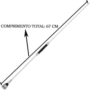 Especificações Técnicas CÓDIGO DO PRODUTO: B-2050 GANHO: 0,5DBI FREQUÊNCIA: 26,96 A 27,40 MHZ COMPRIMENTO: 67 CM PESO DO PRODUTO: 135G