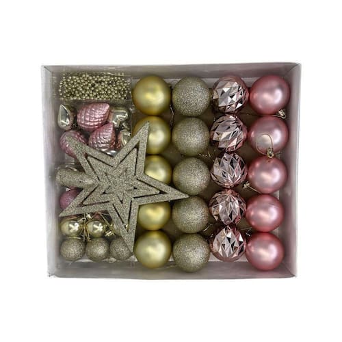 Para quem ama enfeitar a árvore e toda a casa, esse kit com bolinhas será a escolha perfeita para esse natal!Com um design clássico, conta com 40 unidades de diferentes itens, com formas, texturas, tamanhos e tonalidades variadas como, corações, pinhas, bolas com glitter, entre outras, proporcionando diversas combinações, podendo ser utilizado em diversas descorçoes natalinas, como guirlandas, arranjos, centros de mesa e muito mais, dando um toque festivo e sofisticado ao seu ambiente. Cada uma delas contém uma cordinha em seu topo para que possa amarrá-la e pendura-la, trazendo ainda mais facilidade na hora da decoração. Feitas com materiais de alta qualidade, as bolinhas são resistentes e duráveis, podendo ser reutilizadas em várias celebrações natalinas, além de seu tamanho compacto que as torna ideais para árvores de natal de todos os tamanhos. O kit conta com:-01 Cordão de Pérolas Dourado;-01 Estrela Dourada;-05 Bola de 6cm com Glitter;-05 Bola de 6cm Globo Cristalizado;-05 Bola de 6cm Fosca Rose;-05 Bola de 6cm Fosca Dourada;-03 Bola de 4cm com Glitter Rosa;-03 Bola de 4cm com Glitter Dourada;-03 Bola de 4cm Metalizada;-03 Bola de 4cm Espiral;-02 Corações Dourados;-02 Pinhas Rosa. ESPECIFICAÇÕES:Material: PolipropilenoDimensão:-Estrela: Larg.: 20cm x Alt.: 20cm-Bolas Maiores: Diâmetro: 6cm x Volta completa: 19,5cm -Bolas Menores: Diâmetro 4cm x Volta Completa: 12,5cm-Pinhas: Alt.: 6,2cm x Larg.: 4,5cm-Coração: Larg.: 4,5cm x Alt.: 5,5cm-Cordão de Pérola: 4,04MPeso: Kit Aprox. 400gCONTÉM:01 KIT ENFEITES DE NATAL COM BOLAS CORDÃO DE PÉROLAS E ESTRELA - DOURADO E ROSE