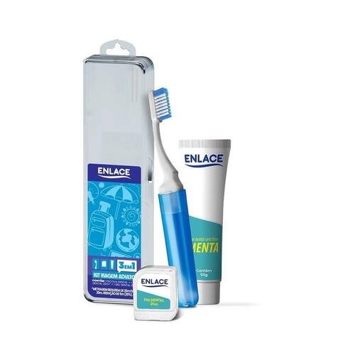 Este kit contém: 01 Escova Dental Portátil, 01 Fio Dental 20m e 01 Gel Dental 50g. Fornecedor: Enlace