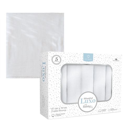 As fraldas são ideais para os cuidados diários, feitas com tecido 100% algodão duplo e extra absorvente, com bainha, garantindo que a pele do bebê se mantenha seca e limpa. Seu toque suave e macio oferece o conforto necessário para o bebê. Perfeitas para enxugar o bebê após o banho e proteger as roupinhas durante a alimentação.