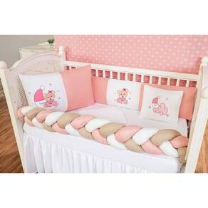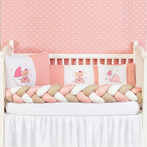 Kit Jogo De Berço Americano Urso Na Lua Trança Menina 6 Pçs