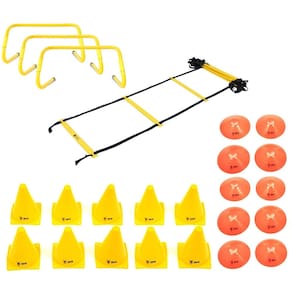 O kit contém: 1x Escada de Agilidade em PVC 4m com bolsa de transporte 10x Cone Chapéu Chinês Laranja 10x Cone 19cm Amarelo 3x Barreiras Ajustáveis Barreiras Ajustáveis Odin Fit são ideais para treinamento de agilidade, velocidade, explosão, coordenação motora e resistência. Ótimas para treinamento funcional, circuito e demais atividades que buscam promover alto gasto calórico e desenvolvimento de agilidade. O acessório possui ajuste para duas alturas 30 cm e 20 cm. As barreiras são leves e portáteis, podendo ser transportadas com facilidade e utilizadas para treinamentos indoor e outdoor. É feita de um resistente a impactos e conta com um excelente acabamento, garantindo alta durabilidade. Especificações: Altura: ajustável de 20 cm ou 30 cm; Material: PVC; Escada de agilidade: Boa fixação no chão, degraus de PVC; Leve; Fácil de montar e armazenar; Escada estendida mede 4 metros; Distância entre os degraus ajustável; Possui 8 degraus; A escada de agilidade é utilizada em treinamentos fitness e de diversas modalidades esportivas com o objetivo de desenvolver, além de agilidade, velocidade, senso de direção, coordenação e equilíbrio. Ela é leve, fácil de montar e fácil de armazenar. Possui duas tiras de nylon medindo 4 metros e oito degraus de PVC medindo 50 centímetros. Especificações da Escada: Cor: Amarela; Comprimento: 4 metros; Largura dos degraus: 50 cm; Especificações do Cone 19cm: Cor: Amarelo; Material: PVC; Altura: 19cm; Especificações Chapéu Chinês: Cor: Laranja; Material: PVC; Diâmetro: 19cm; Kit Contém: 1 uma Escada de agilidade Amarela com 4m e 8 degraus de PVC; 1 uma Bolsa para a Escada de Agilidade; 10 dez Cones de Agilidade 19cm Amarelos; 10 seis Cones tipo Chapéu Chinês Laranjas; 3 três Barreiras Ajustáveis de Dois Ajustes. de 3 meses contra defeitos de fabricação. Marca: Não Informado