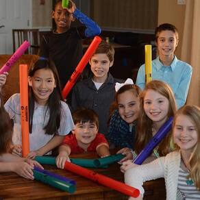 O Kit contém 8 tubos coloridos da nota dó3 a dó4 (oitava central do piano). A escala diatônica é a mais popular da Boomwhacker e permite que mais músicas sejam tocadas. Comprimento dos tubos de 28cm a 61cm.