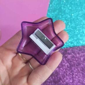 O apontador Barbie possui estampas divertidas e depósito que evita sujeira.