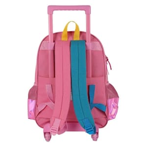 Mochila com rodas: Confeccionada em poliéster fechamento em zíper puxadores personalizados compartimentos espaçosos 2 bolsos laterais para garrafa possui rodas e alça de mão design exclusivo etiqueta de identificação na parte traseira Medidas aproximadas: Altura mochila+alça : 75 cm altura mochila : 40 cm largura: 15 cm comprimento: 30 cm