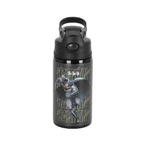 Armazenamento 500ml; Fechamento em rosca; Tampa com bico dosador; Suporte para carregar; Válvula antivazamentos; Acompanha Canudo; Estampa: Batman Observação: Não é térmica.