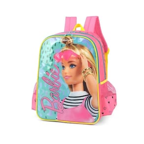 Mochila escolar de costas barbie modelo produzido em poliéster 1 divisão grande 02 bolsos de redinha alças acolchoadas ziperes com puxadores personalizados estampa estilizada dimensões: 40 x 29 x 13 cm alt x larg x prof ;