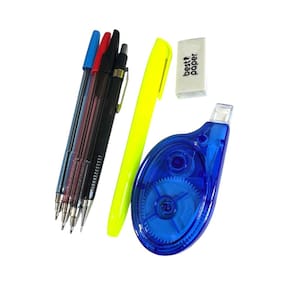 3 Canetas Esferográficas vermelha, preta e azul - A escolha perfeita para anotações coloridas que ajudam a fixar o conteúdo. 1 Lapiseira 0,7mm - Para aqueles que preferem uma escrita precisa e sem borrões. 1 Borracha - Acompanhe cada ideia sem erros indesejados 12 Grafites - Nunca fique na mão, sempre tenha um grafite sobressalente. 1 Marca Texto - Destaque as partes mais importantes do seu material. 1 Fita Adesiva Apagar 0,5mm x 8m - Para correções rápidas e eficazes.