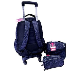 Kit Escolar Carrinho Mochila + Lancheira + Estojo MC3692 Esta mochila pode ser usada de duas formas: 1 nas costas 2 com puxador - praticas rodinhas que deslizam em giro 360 graus