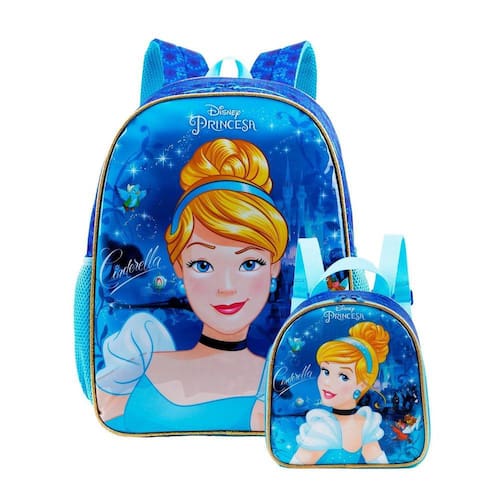 O Kit Escolar Prince Cinderela é perfeito para as pequenas fãs da princesa Cinderela. Este kit inclui uma mochila de costas G e uma lancheira térmica, ambos com estampas encantadoras da Cinderela e outros personagens da Disney.