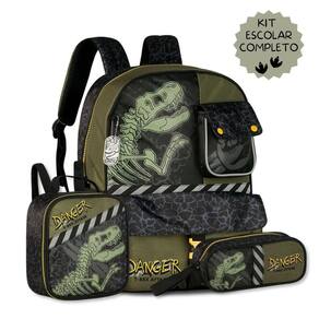 O Kit Escolar Infantil Dinossauro com Mochila de Costas, Lancheira Térmica e Estojo é a escolha perfeita para acompanhar os meninos durante a rotina escolar com conforto, organização e muito estilo. A Mochila de Costas TX25027J é confeccionada em poliéster de alta qualidade com detalhes em ripstop e possui estampa moderna de dinossauro em tons de verde. Seu compartimento principal é espaçoso e com fechamento em zíper, ideal para cadernos e livros. Conta ainda com dois bolsos frontais para manter os acessórios organizados e bolsos telados laterais para garrafinhas. Suas alças de costas são ajustáveis e acolchoadas, garantindo conforto no transporte, e a alça de mão superior traz mais praticidade no dia a dia. Acompanha chaveiro personalizado. Dimensões aproximadas: 40x30x13cm. A Lancheira Térmica TX25028L mantém os alimentos bem conservados graças ao revestimento térmico interno. Produzida em poliéster com frente em telado duplo e etiqueta de borracha, possui fechamento em zíper, alça de costas regulável, alça de mão superior e alça carona que permite acoplar diretamente na mochila de rodinhas ou malas. Dimensões aproximadas: 23x20x11cm. O Estojo TX25029E completa o kit oferecendo espaço interno para organizar todos os materiais menores, como lápis, canetas e borrachas. É confeccionado em poliéster resistente, com frente em telado duplo, puxador de zíper personalizado e design moderno de dinossauro. Dimensões aproximadas: 21x9x6cm. Esse kit é ideal para quem prefere mochila de costas, oferecendo praticidade, resistência e estilo em um só conjunto. Com estampa exclusiva e acabamento de qualidade, é perfeito para pais que procuram produtos duráveis e funcionais para a volta às aulas. Marca: Não Informado