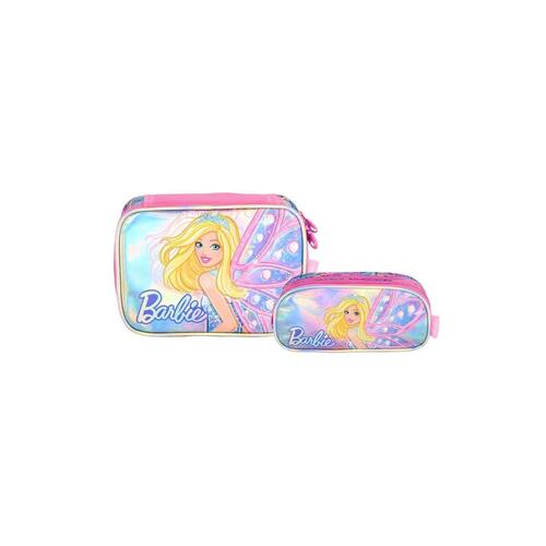 Kit Escolar Estojo Box+Estojo Triplo Barbie Magic - Rosa