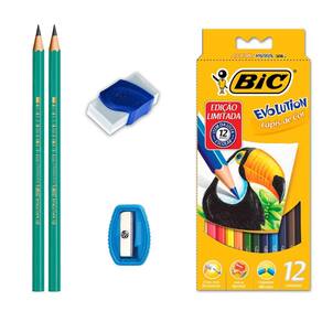 Inclui 12 Lápis de Cor BIC Evolution;