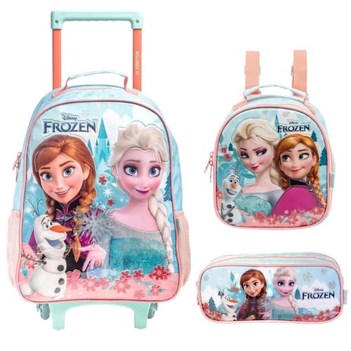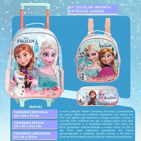 Kit escolar frozen disney mochila rodinha estojo lancheira