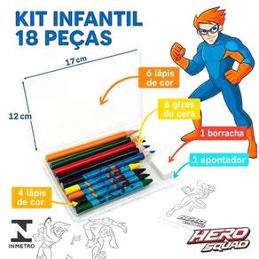 Kit Escolar Hero Squad 18 Peças Giz Lápis Desenhos Borracha Kit Escolar Hero Squad 18 Peças Giz Lápis Desenhos Borracha ===================================== Ideal para crianças que adoram soltar a imaginação com os seus personagens favoritos.