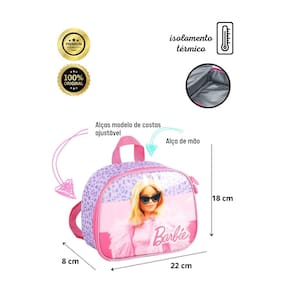 Kit Escolar Lancheira Térmica+Estojo Triplo Barbie Lancheira: Material externo: Poliéster Material interno: multicamadas e folha de alumínio Compartimento Unico Fechamento por zíper Alça de costas regulável Alça de mão Medidas: Comprimento: 22cm. Largura: 08cm. Altura: 18cm. Estojo: Produzido em poliéster Triplo compartimento Cursores personalizados Material altamente resistente Fechamento por zíper de otima qualidade Design Personalizado e exclusivo Medida: Altura: 10 cm Profundidade: 09 cm Largura: 22 cm CUIDADOS: -guarde em um local seco e arejado evitando locais úmidos. - Evite colocar excesso de peso no produto para não forçar os zíperes e costuras. - Proteja os objetos cortantes e/ou pontiagudos evitando o contato direto com o produto. - Evitar altas temperaturas. - Cores claras poderão manchar quando em contato com outros objetos ou roupas de cores pigmentadas. DICAS DE LIMPEZA: - Para a limpeza utilize apenas pano úmido com sabão neutro. - Não deixar de molho e secar a sombra.