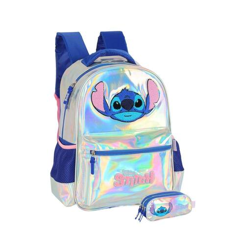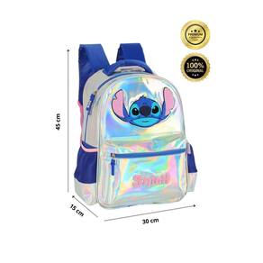 Kit Stitch Mochila Holográfica Prata e Estojo Triplo Prepare-se para a maior aventura intergaláctica com o kit Stitch 3D prata Ideal para os fãs do alienígena mais querido da Disney, esse kit é perfeito para a escola, viagens ou simplesmente para mostrar seu amor pelo Stitch. Mochila Costas: Design 3D: A estampa do rosto do Stitch em 3D prata salta aos olhos e deixa qualquer criança encantada. Conforto e praticidade: Alças de costas ajustáveis e acolchoadas para um transporte confortável e alça de mão Organização: Bolso lateral para garrafa de água e compartimento principal espaçoso para guardar todos os materiais escolares. Durabilidade: Confeccionada em material resistente, garantindo longa vida útil. Estojo Triplo: Espaçoso e organizado: Triplo compartimento para guardar canetas, lápis, borrachas e outros materiais escolares de forma prática e segura com cursores personalizados. Material resistente: Confeccionado em material durável para acompanhar a rotina agitada das crianças. Design moderno: Estampa do Stitch em prata, combinando com os demais itens do kit. CUIDADOS: -guarde em um local seco e arejado evitando locais úmidos. - Evite colocar excesso de peso no produto para não forçar os zíperes e costuras. - Proteja os objetos cortantes e/ou pontiagudos evitando o contato direto com o produto. - Evitar altas temperaturas. - Cores claras poderão manchar quando em contato com outros objetos ou roupas de cores pigmentadas. DICAS DE LIMPEZA: - Para a limpeza utilize apenas pano úmido com sabão neutro. - Não deixar de molho e secar a sombra.