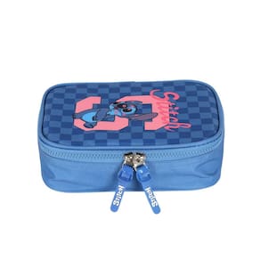 Características do produto Estampa do stitch em alta definição Material resistente, durável e fácil de limpar Divisões internas com elástico para melhor organização de lápis, canetas e acessórios Fechamento em zíper duplo reforçado Cursores personalizados Comparta até 100 lapis/canetas dimensões aproximadas