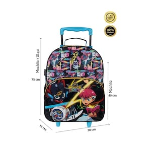 Kit Escolar Mazica Anime Mochila Rodas + Lancheira Mochila com Rodas: Confeccionada em Poliéster Fechamento em zíper 2 compartimentos espaçosos 2 bolsos laterais para garrafa Possui RODAS e ALÇA DE MÃO Design exclusivo Medidas aproximadas: Altura: 40 cm Largura: 15 cm Comprimento: 30 cm Lancheira Térmica: Confeccionada em Poliéster Isolamento térmico Alça de mão e alça transversal Design exclusivo Fechamento em zíper Medidas aproximadas: Altura: 22 cm Largura: 8 cm Comprimento: 18 cm CUIDADOS: - Guarde em um local seco e arejado evitando locais úmidos. - Evite colocar excesso de peso no produto para não forçar os zíperes e costuras. - Proteja os objetos cortantes e/ou pontiagudos evitando o contato direto com o produto. - Evitar altas temperaturas. - Cores claras poderão manchar quando em contato com outros objetos ou roupas de cores pigmentadas.